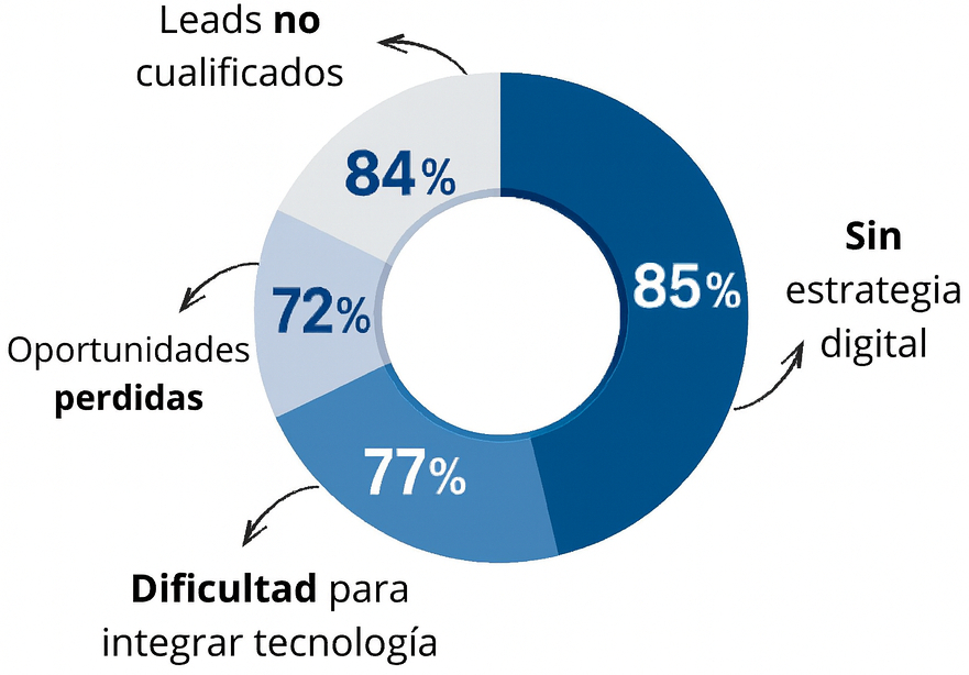 → Si la digitalización ya es un reto, el marketing genérico no puede resolverlo. (Fuente: PlanRadar España 2024) - 85 % del sector aún no tiene una estrategia digital completa.